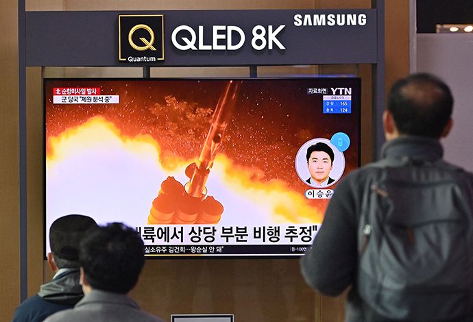 当地时间2022年1月25日,韩国首尔,韩国军方当日上午8时30分左右发现,朝鲜向半岛东部海域发射了两枚疑似巡航导弹的发射体。人民视觉 图