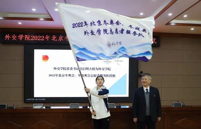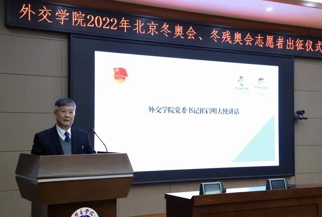 1月20日,外交学院举行2022年北京冬奥会、冬残奥会志愿者出征仪式。党委书记崔启明大使、专职党委副书记安青出席仪式。出征仪式由党委学生工作部部长、学生处处长王胜乾主持,团委书记王华迪带领全体志愿者宣誓。外交学院2022年北京冬奥会、冬残奥会志愿者和带队老师参加仪式。