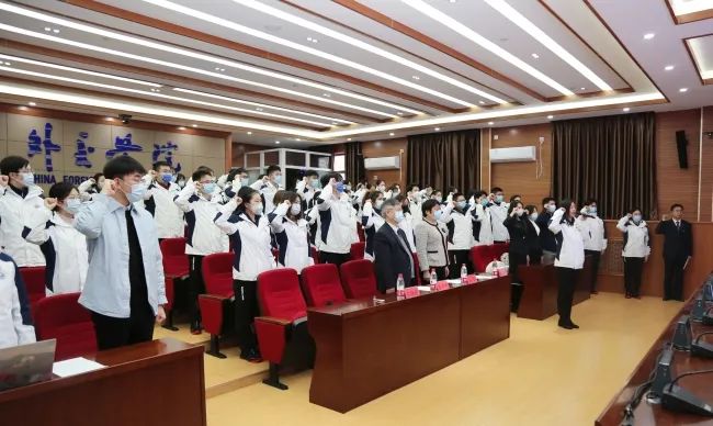 团委书记王华迪带领全体出征志愿者重温冬奥志愿者誓词。