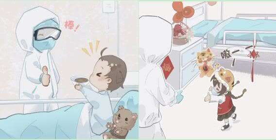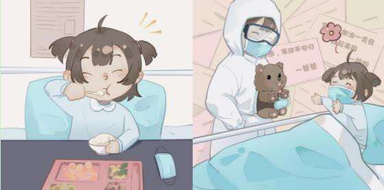 时下,整个社会都在关注着这群孩子们的治疗情况,出乎意料的是,疫情面前,孩子们表现得坚强懂事,积极配合。近日,天津市本轮本土疫情中确诊儿童患者陆续出院后,被送往市第一中心医院水西院区,继续接受康复治疗和健康监测。天津理工大学艺术学院2020级视觉传达设计专业的学生杨佳悦,为了给孩子们打气加油,创作出一组战“疫”主题漫画,描绘其在医院治疗、生活的温馨场景。