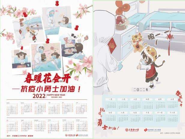 1月25日恰逢农历小年,天津理工大学根据学生设计的漫画,于24日连夜赶制出百余份“春暖花会开,抗疫小勇士加油!”2022年主题年历,作为礼物送给一中心医院的孩子们。学校后勤管理处得知消息后,也送去了农历小年寓意迎祥纳福糖瓜,用福袋包装好作为礼物一并送出。1月25日下午,承载着校园爱心的“礼物”,交到了孩子们手中。