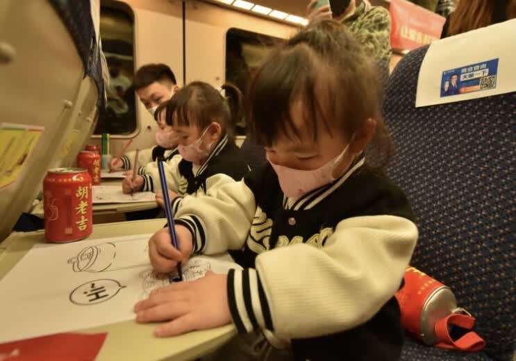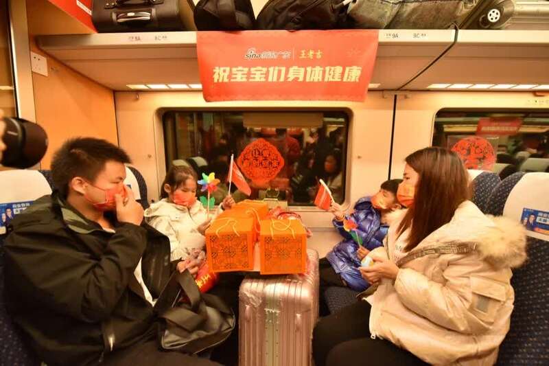 车厢里,工作人员借助节庆窗花等吉祥元素打造春节氛围,并设置了趣味问答抽奖、孩子填色比拼等互动环节,还为爱心旅途中1月份生日的小朋友准备了集体生日会。此次参与的家庭,不仅车票免费,还有“哄娃包”小礼品。有家长表示,一路上不仅省心,还创造了一个陪伴和了解孩子的机会,回家旅途有了不一样的意义。