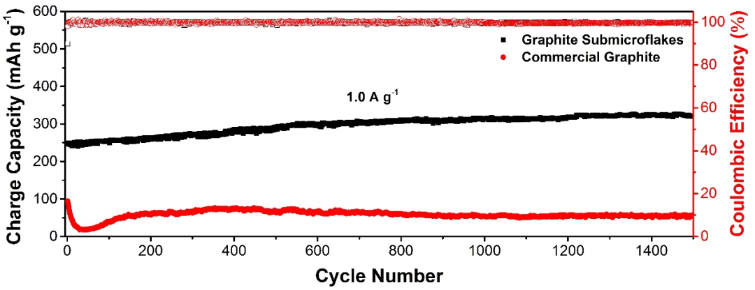 梁初教授团队设计了新化学合成路径,CO₂在126 °C条件下只需3秒就一步绿色转化为石墨,无需3000 °C高温石墨化过程。特别是,合成的石墨材料用作电动汽车的锂离子电池,展现了远超商业化石墨的高倍率性能和循环稳定性,可大幅缩短电池充电时间并提升使用寿命。相关成果发表在Nature Communications上。