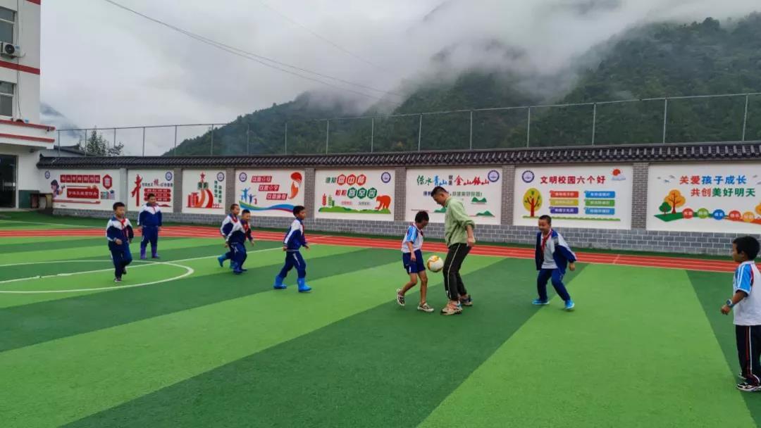 林令辉一行六人,第一天走进西坡学校,就被几个正在踢足球的孩子好奇地围住了。