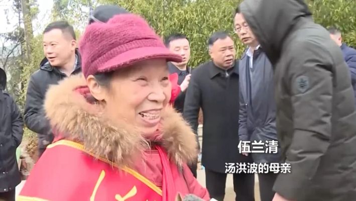 汤洪波的母亲伍兰清抑制不住激动的心情
