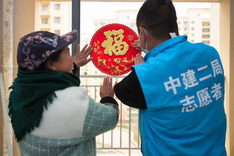卯家湾易地扶贫搬迁安置区项目由中建二局承建,为了帮助搬迁群众适应城市生活,中建二局云南分公司安排员工及时解决群众家中的生活问题,如不会使用电插座、马桶不能冲水、下水道堵塞等。春节期间,当地街道办事处、中建二局云南分公司等安排了职工坚守岗位,确保群众过好搬迁幸福年。