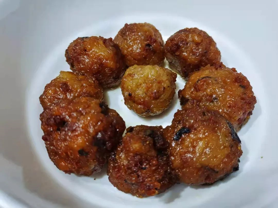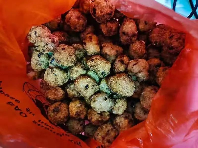 炸圆子,这是宣城过年的必备,这个从入小年就要开始做了,里面是肉馅的,外面是糯米,圆子寓意团团圆圆,炸好了放着,我们能吃到初八;还会有灌香肠和晒咸肉,每年过年都是年味儿满满。