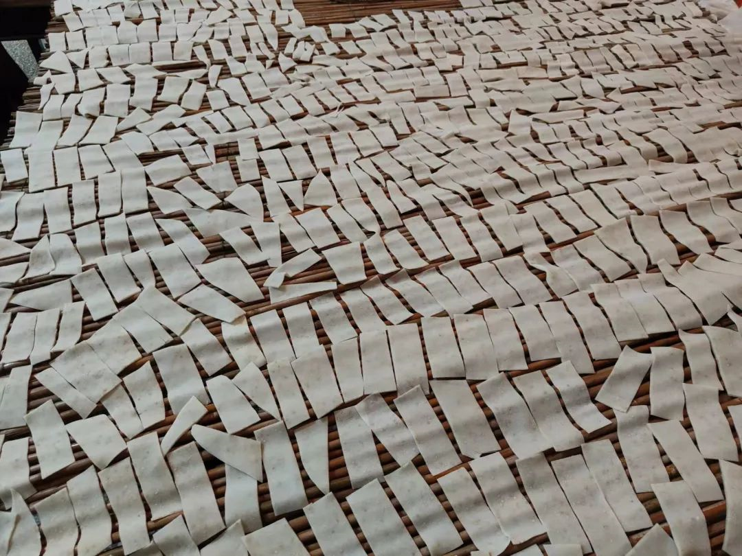 我们徐州人过年会炸果子。把熟的糯米团团加芝麻跟生糯米粉一起揉均匀后擀成薄片切片,这个就是炸果坯子了,把炸果坯子一片一片地摊开晾个两三天,晾到干透变硬,然后下锅用油炸,炸果子就做好啦。炸果子和炸虾片有点像,但是炸果子口感硬硬脆脆的,不会像膨化食品那么蓬松。