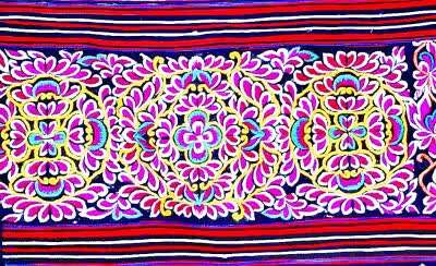 毕节一带常见的苗族刺绣平绣花草纹作品。陈梅摄/光明图片