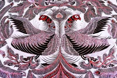 纳雍县弯子村苗家绣娘绘制的苗绣蜡画《苗岭飞凤》。纳雍县委宣传部供图