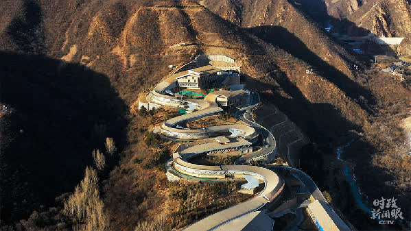 国家雪车雪橇中心整条赛道宛如一条游龙,飞腾于山脊之上。(总台央视记者 程铖 拍摄)