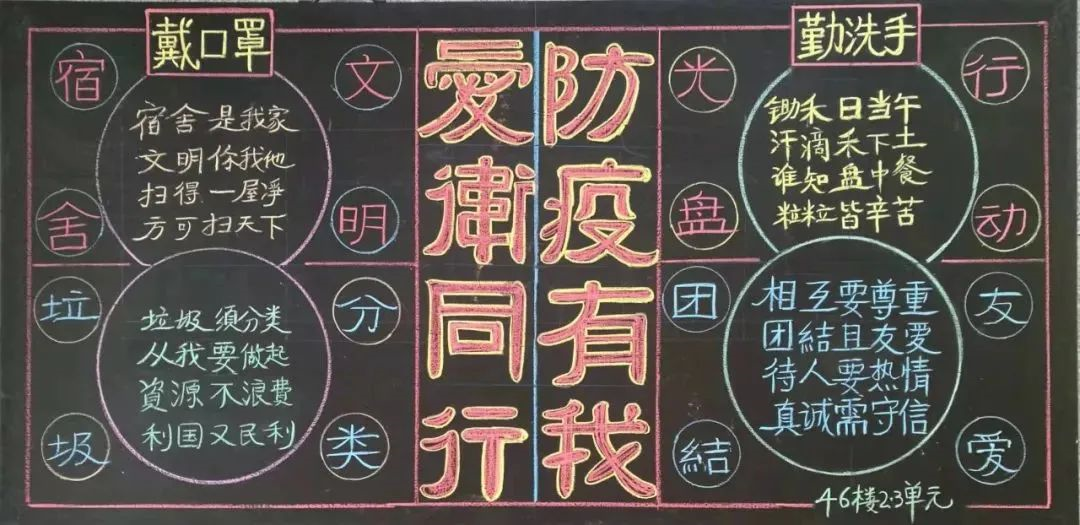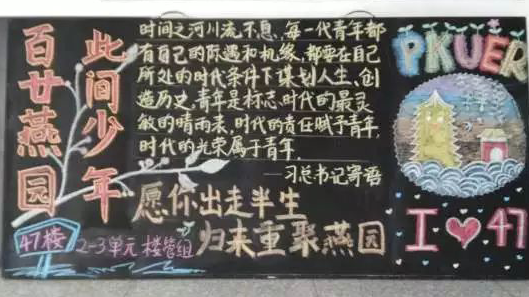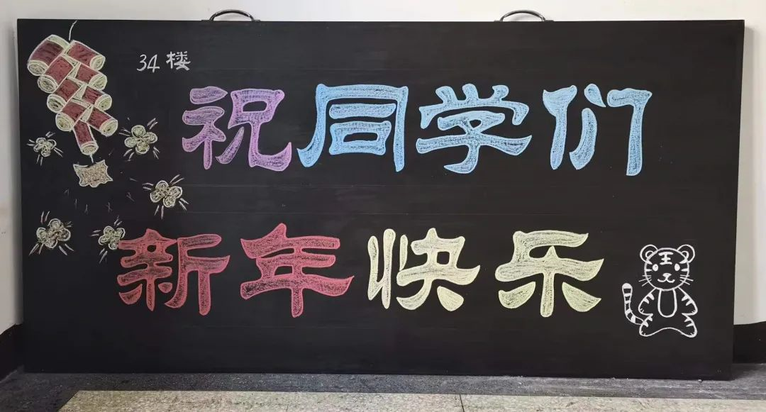 用同学们最熟悉的板报的形式,希望能够传达出我们的心声。一年又一年,我们和大家朝暮相处,希望每一位同学们在新的一年里首先身体健康,不管学习、生活面对任何压力,尽量保持一个积极向上的良好心态,相信一切美好都会到来。认真的做好科研,顺利完成学业。同学们,加油鸭!