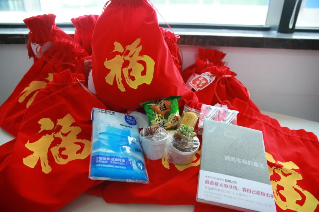 “健康福袋”:装有口罩、消毒液等防疫物资,为大家送去平安和健康