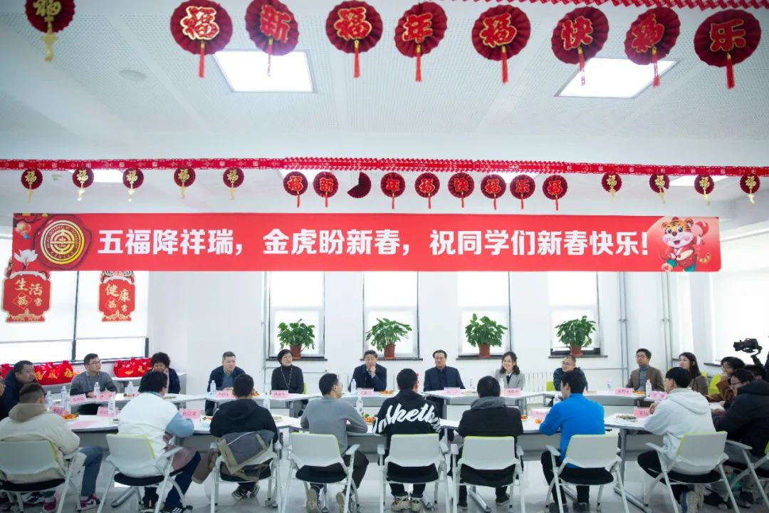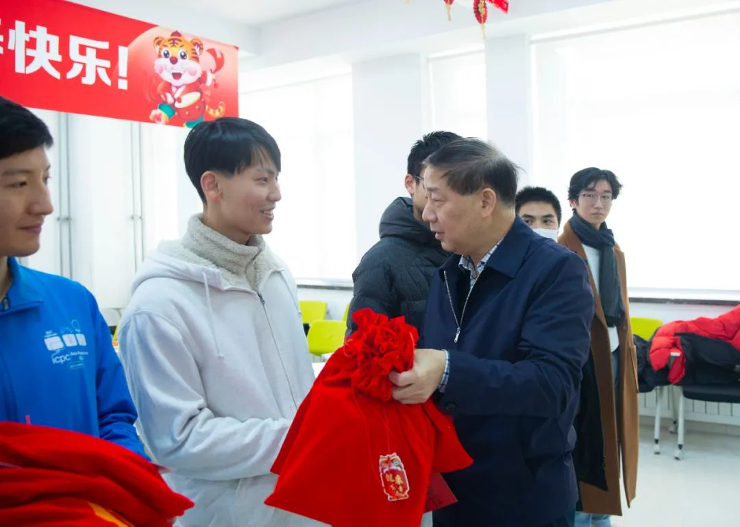 在学生文化中心,项昌乐等校领导为留校学子送上福袋,与同学们共话成长,共贺新春。福袋里装有家乡美食、盆栽、书籍、零食、防疫物资和家人们的祝福卡片,祝福大家新春快乐、五福临门。“家在哪里,假期怎样安排?”项昌乐与留校学子亲切交流,关切地了解他们的留校生活。他勉励大家要合理安排假期时间,勤奋学习、健康生活,不断提升本领、充实自我,在学校度过一个难忘、愉快的春节。