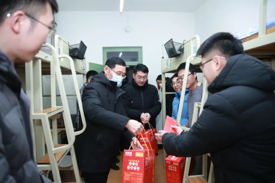在总值班室、中心变电所、供暖服务中心、西山学生宿舍、沁园食堂等地,郭东明等校领导先后看望慰问一线在岗职工和留校学生,详细了解寒假期间学校疫情防控、供电供暖、安保管理、住宿餐饮以及学生学习生活等情况。郭东明向大家致以节日问候,并感谢大家仍然坚守岗位,为保障学校安全稳定运行做出的贡献。他叮嘱相关负责人要做好常态化下疫情防控和服务保障工作,确保广大教职工、留校学生能够度过一个祥和的新春佳节。