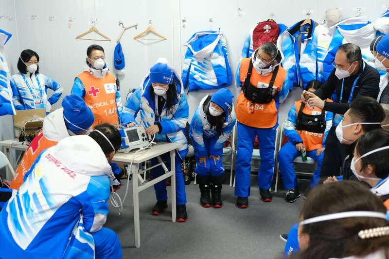 几天前,包括袁强在内的38名滑雪医生和医疗官正式进入北京冬奥会国家高山滑雪中心场馆。此次赛事共设置十多个赛道医疗点,其中竞速项目11个,竞技项目6个,虽然比赛还未开始,但医疗队员们却已投入到紧张的工作中,除了在医疗点巡逻值守外,他们还要负责对受伤工作人员的救治。