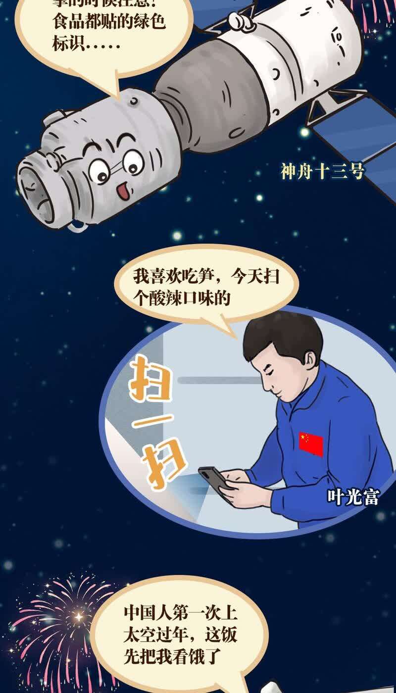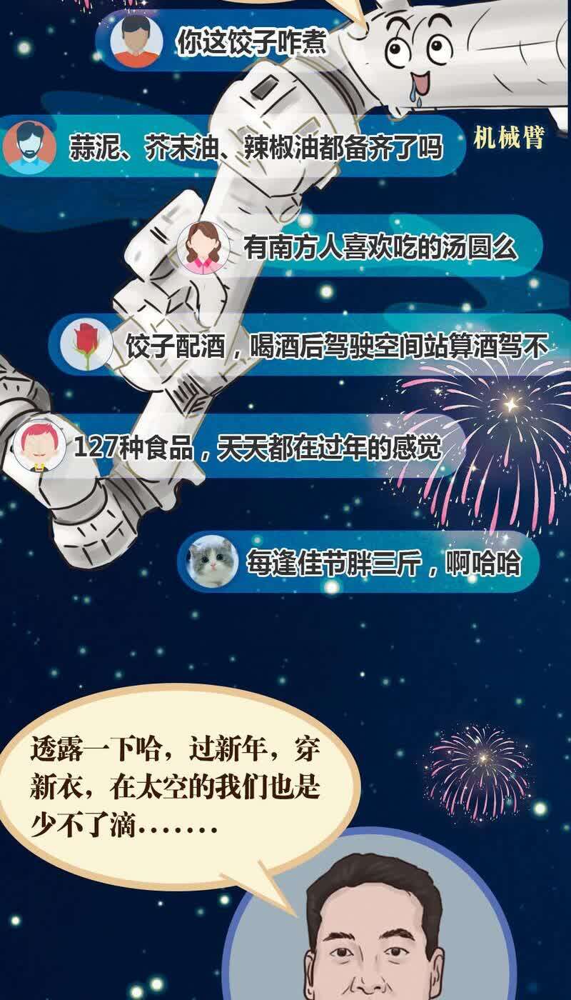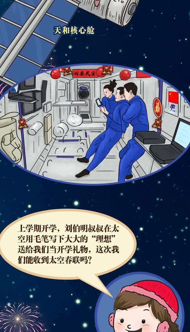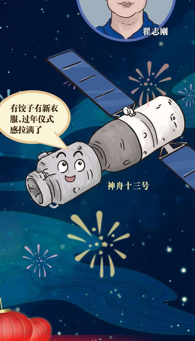 临近春节,首次在太空过年的中国航天员,在空间站贴上了春联,挂上了福字和中国结,春节仪式感满满!网友说:中国红一出场,中国空间站的年味儿就有了!远在太空,也可以吃上热气腾腾的饺子吗?在天上怎么过春节?我们用手绘给你画出来了!