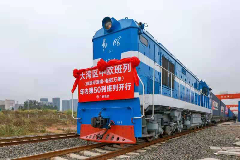 这是农历新年大湾区开出的首趟中老国际班列,也是2022年大湾区开出的第50趟国际班列,已累计运送年货与企业复产物资近5万吨,开行数量同比去年增加了75%。