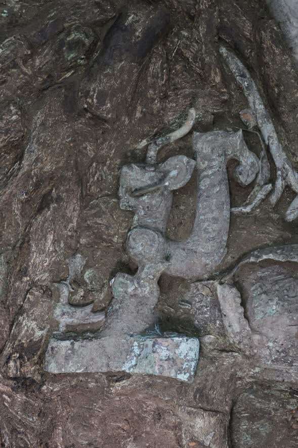 “三星堆此前有龙的造型出现,但以这种体量且以圆雕方式出现是头一次。现在文物表面还有很多土未清理,相信清理好后会非常华丽。”赵昊说。