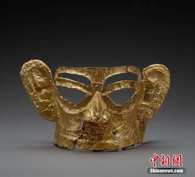 这次发掘,发现不少国宝级文物。其中,5号祭祀坑发现一张体量巨大的金面具。虽然只有半张,但金光灿灿、十分夺目。