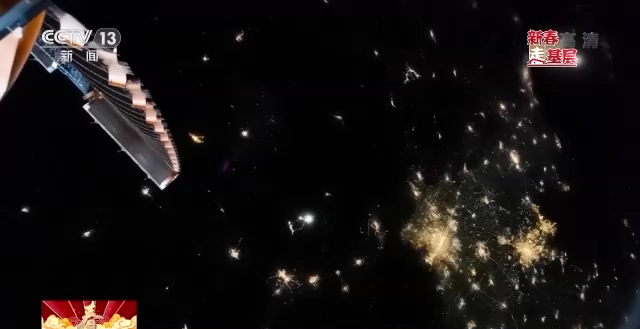 晚上7时30分,中国空间站过境祖国上空,记者用镜头记录下了空间站飞过北京航天城的影像,航天员也从太空拍下了灯火璀璨的除夕夜。