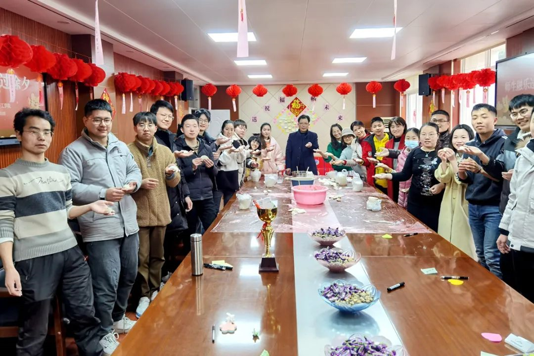 生命科学技术学院的师生们还共同参与趣味小游戏,一同包饺子、品尝黑米粥、艾尔酒和汤圆,感受“舌尖上的生科”,在欢声笑语中迎贺新年。