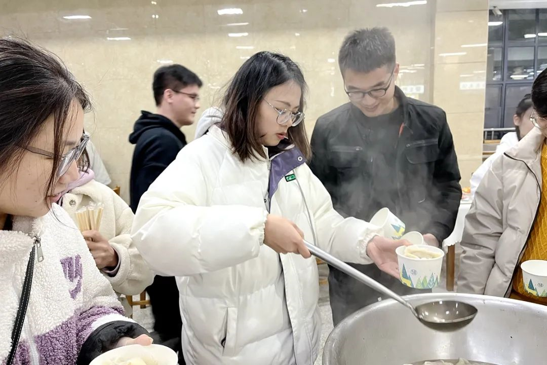 ▲动物科学技术学院、动物医学院留校师生共同品尝自己动手制作的饺子(动物科学技术学院、动物医学院 供图)