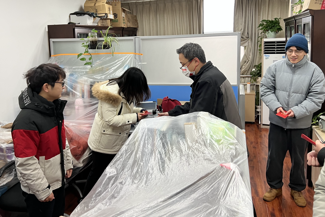 ▲李召虎与同学们恭贺新春(吴晗 摄)