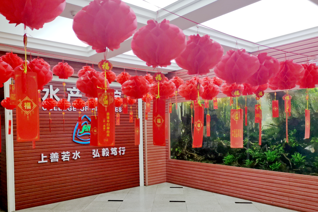 水产学院精心策划了写春联、猜灯谜等活动,还为留校同学们准备了年夜饭。2020级渔业发展专业研究生裴福成说:“虽然因为疫情不能归家,但华农给我家一样的感觉,温暖我的2022年,新的一年,我一定更加努力奋斗。”