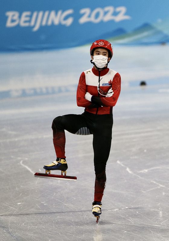 2月2日,中国香港选手朱定文在短道速滑训练间隙。中国日报记者 张威 摄