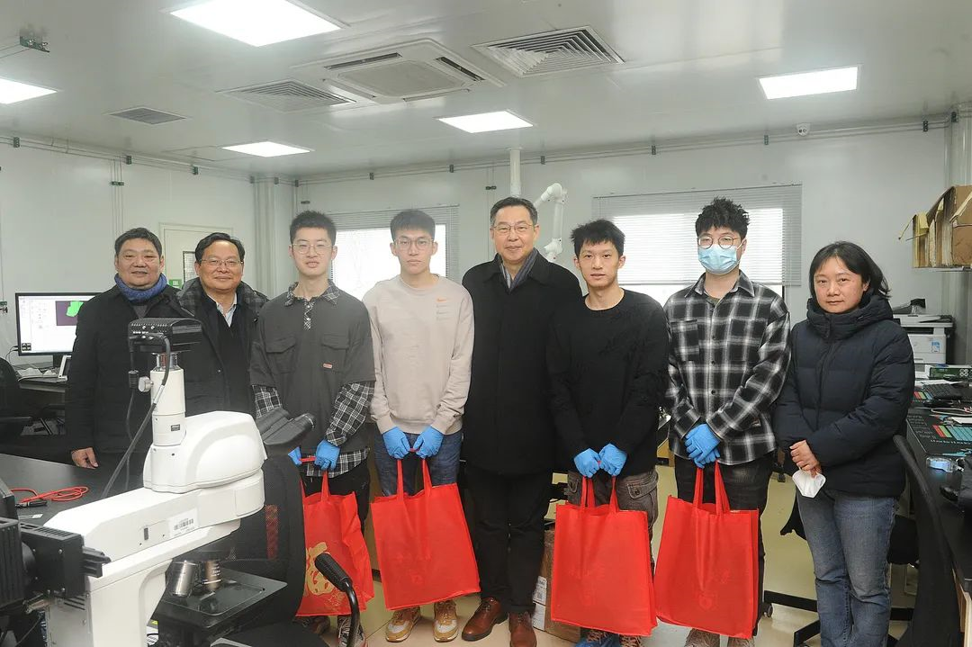 在环境学院,王振林一行向正在实验室开展科研工作的青年师生们致以新春问候。他表示很高兴看到学院为同学们所做的暖心安排和保障工作,并对师生团队融洽协作、开拓创新的积极风貌表示赞许,鼓励青年学子弘扬科学家精神,敢于担当作为,主动攻坚克难,“将论文写在祖国大地上“,努力成长为创新型、复合型、应用型人才。同时,他嘱咐同学们在紧张的科研学习之余,要注意劳逸结合,既要充分利用假期时间提升自己,也要愉快开心过好春节。多与父母联系,让家人放心。