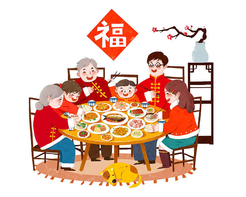 五是团圆。家庭是社会的最小细胞,是个人成长的摇篮、情感的港湾。中国人重视家庭,重视亲情。“每逢佳节倍思亲”,人们都希望在节日期间回归故乡和家人团聚。在新旧交替的春节,人们就更希望和家人一起,共同守候旧年的离去,一起庆贺新年的到来。过年的团圆内涵,不仅指生者之间的团圆,也指生者与逝去的亲人之间的团圆。古人过年时,一般会将祖灵请回共度佳节,将最好的食品最先献给他们,用最庄重的跪拜礼节向他们致敬,以示对逝者的尊重,也是感恩之心的重要体现,充分反映了中国人的人文关怀和伦理情感。