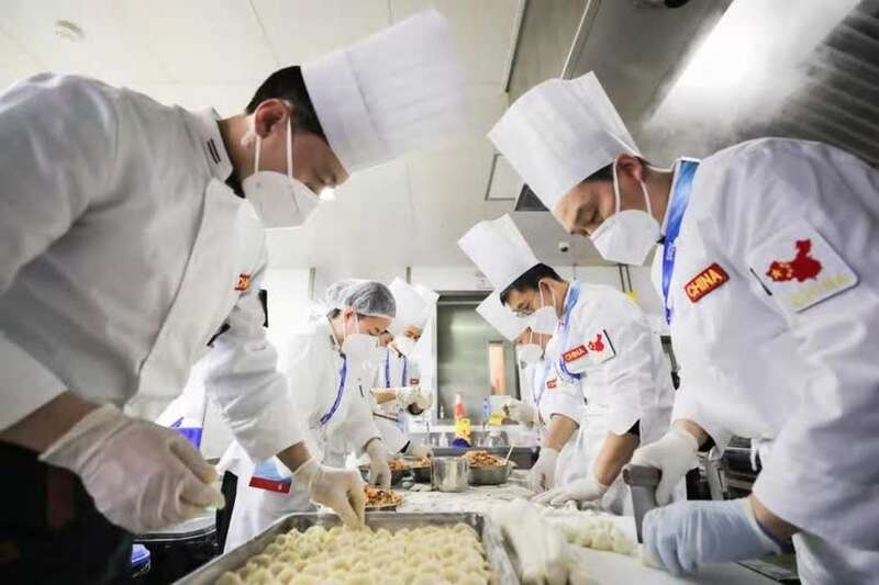图为五棵松体育中心员工餐厅的工作人员 (五棵松体育中心:范杰 摄影:樊迪)