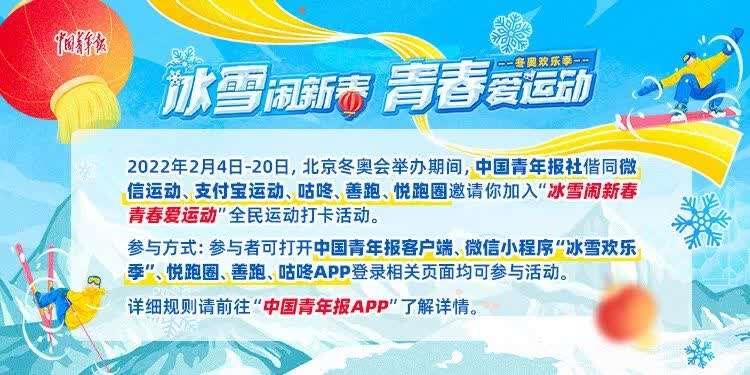 中国青年报联合咕咚、善跑、悦跑圈、支付宝运动、华为运动平台在2022年北京冬奥期间推行线上线下互动体验活动,旨在激发群众特别是青少年群体参与冰雪运动的积极性和热情,意在传承和发扬中国传统文化和冰雪文化,打造“爱户外·多运动”的潮流ID。