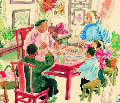 家是最温暖的地方,也是最安全的港湾。新年是巨大的磁石,漂泊在外的人,“有钱无钱,回家过年”“一年不赶,赶年三十晚”。新年是家庭团聚的盛大节日,年夜饭是辞旧迎新的团圆圣餐。在物资匮乏的传统社会,年夜饭是一年最丰盛的晚餐。同时它也是最具仪式性与象征性的晚餐。