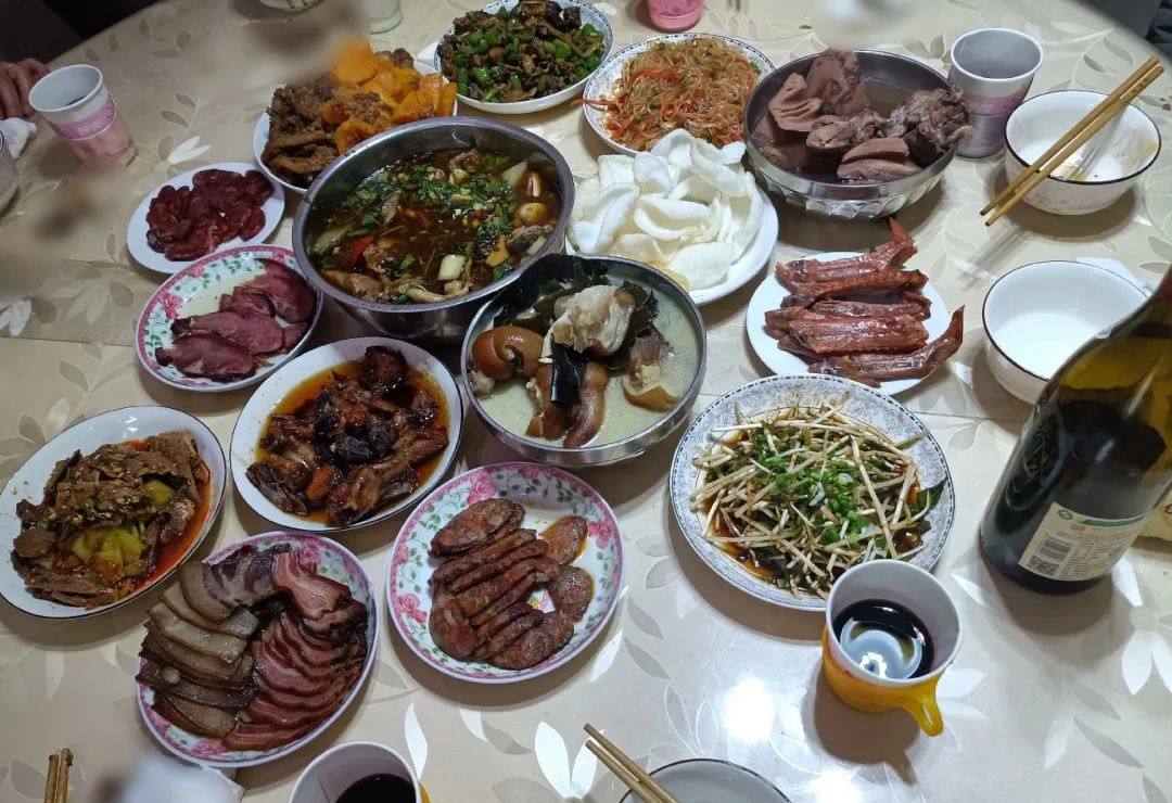 辣子鸡、糖醋排骨、腊肉香肠、粉蒸肉······家人闲坐,灯火通明,热情聊天,滋味无限。