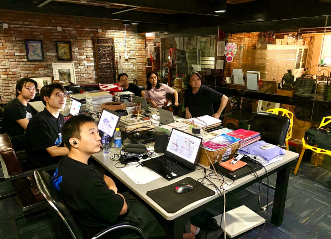 薛义教授(右一)与“智形”设计团队在工作中