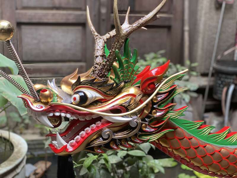 于是,张伟潮马上将自己得意作品的照片提供给摄制组挑选,最后选择了开幕式中观众看见的龙头。这个龙头制作于2020年,为广州天河区石牌村定制的龙头。