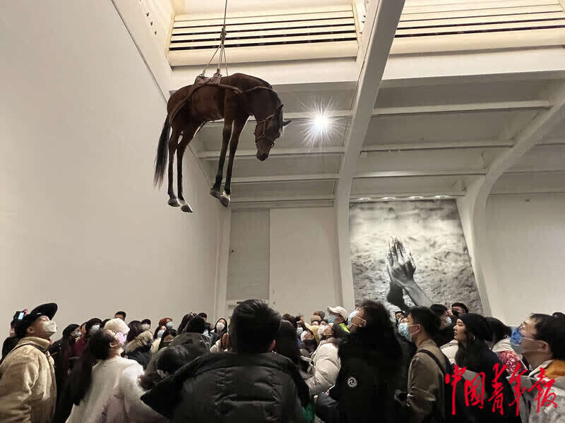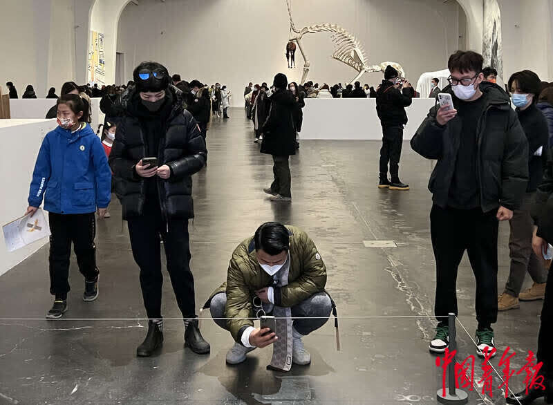 2月5日,北京798艺术区,尤伦斯当代艺术中心,“莫瑞吉奥·卡特兰:最后的审判”展览现场,参观者们在观看作品。当日是正月初五,看展成为不少人春节假期的休闲选择。本次展览于2021年11月20日至2022年2月20日在北京尤伦斯当代艺术中心展出,这也是意大利国宝级艺术家中国首个个展,集中呈现其三十余年艺术生涯中,29件指涉死亡、社会道德观念、艺术风云人物,以及当代全球化语境下艺术本质和价值等主题的代表作品。中青报·中青网记者 程璨/摄