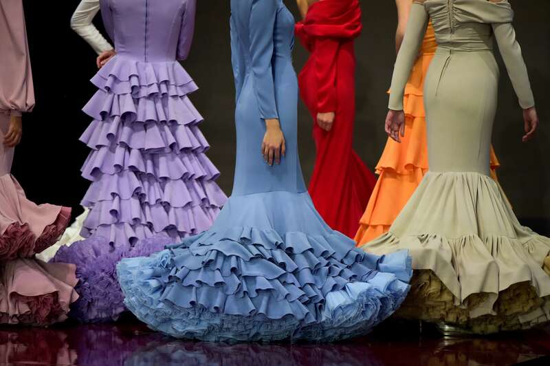 2月4日,模特在西班牙塞维利亚举行的国际弗拉门科时装节上展示弗拉门科服饰。第27届国际弗拉门科时装节2月3日至6日在西班牙塞维利亚举行。新华社/法新