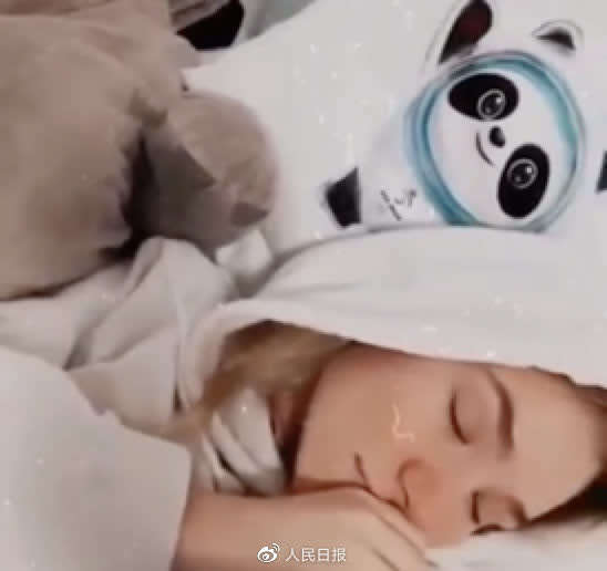 捷克花滑运动员娜塔莉·塔施莱罗娃睡前发vlog,秀出“与我的熊猫的第一个晚上”
