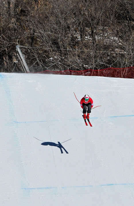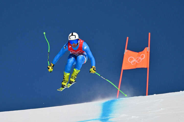 2月3日,北京冬奥会高山滑雪男子滑降项目第一次训练在北京延庆国家高山滑雪中心举行。图为意大利选手马泰奥·马尔萨利亚在训练中。新华社记者陈益宸摄