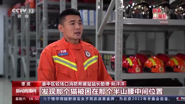 渝中区较场口消防救援站站长助理 阮洋洋:很多人也纳闷,为什么救个猫要这么兴师动众呢?每次出这种警的时候呀,我都把它想成一个人去救,我们还是选择了最后一套方案,绳索下降,去救这只猫。