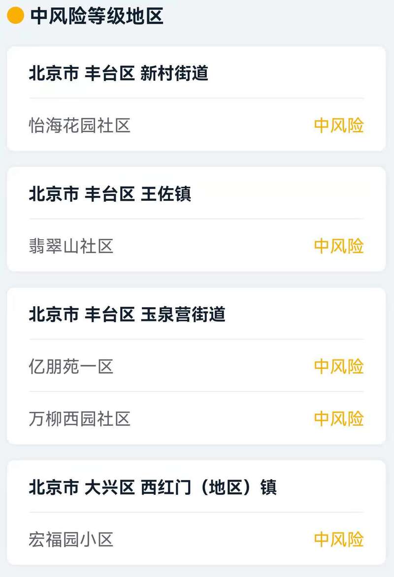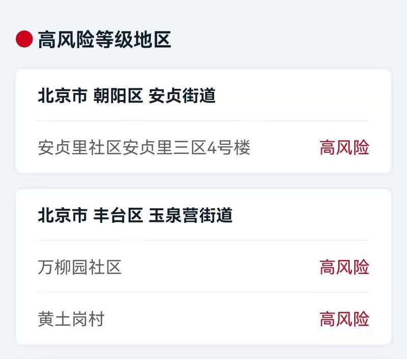北京市高风险地区: