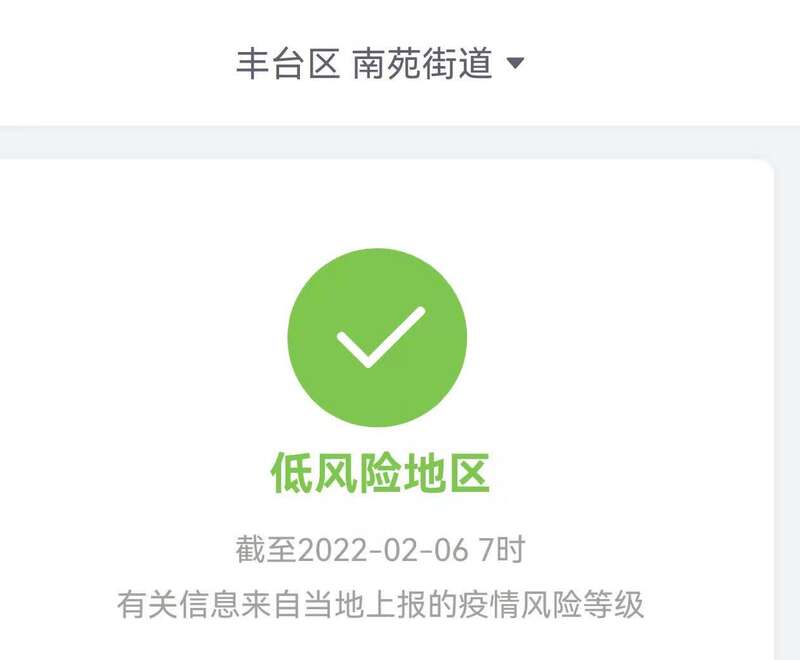根据国务院客户端小程序消息,截至2月6日7时,北京市丰台区南苑街道南庭新苑由中风险地区降为低风险地区。
