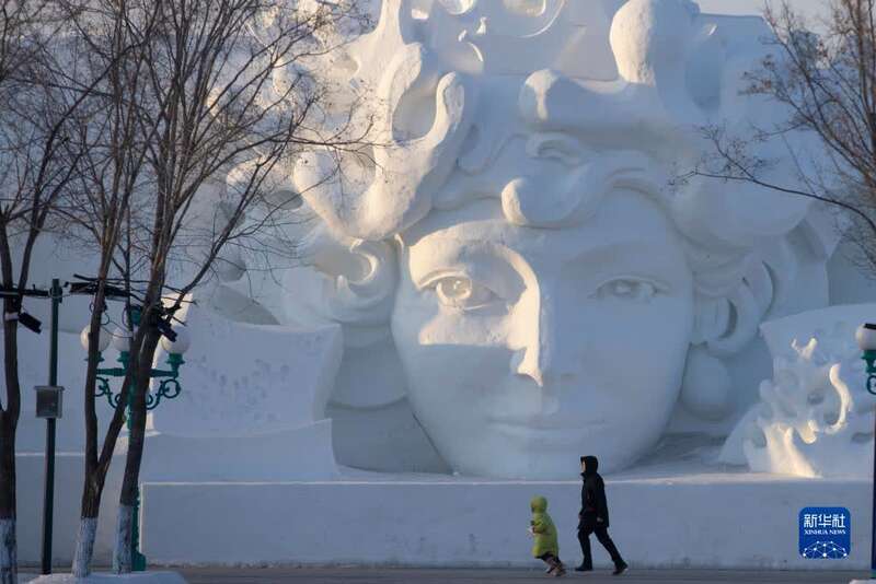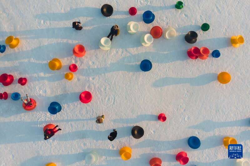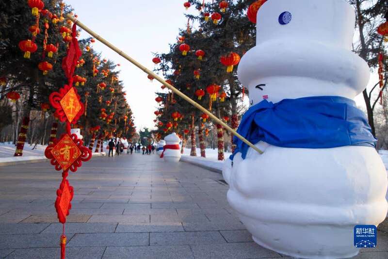 当日是农历大年初五,在黑龙江省哈尔滨市,游人来到第三十四届哈尔滨太阳岛雪博会园区游览,体验游戏项目,欢度假期。