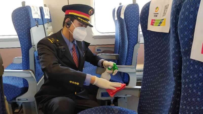 “站姿准备!男士标准式,女士丁字步!”乘务员们随着施玉文干练的口令进行走姿、坐姿、服务用语、妆容装束等服务技能的训练。为了保障疫情安全,施玉文牢牢盯好列车公共区域的消毒工作,为重点旅客配齐应急药品,免费为旅客提供一次性口罩。