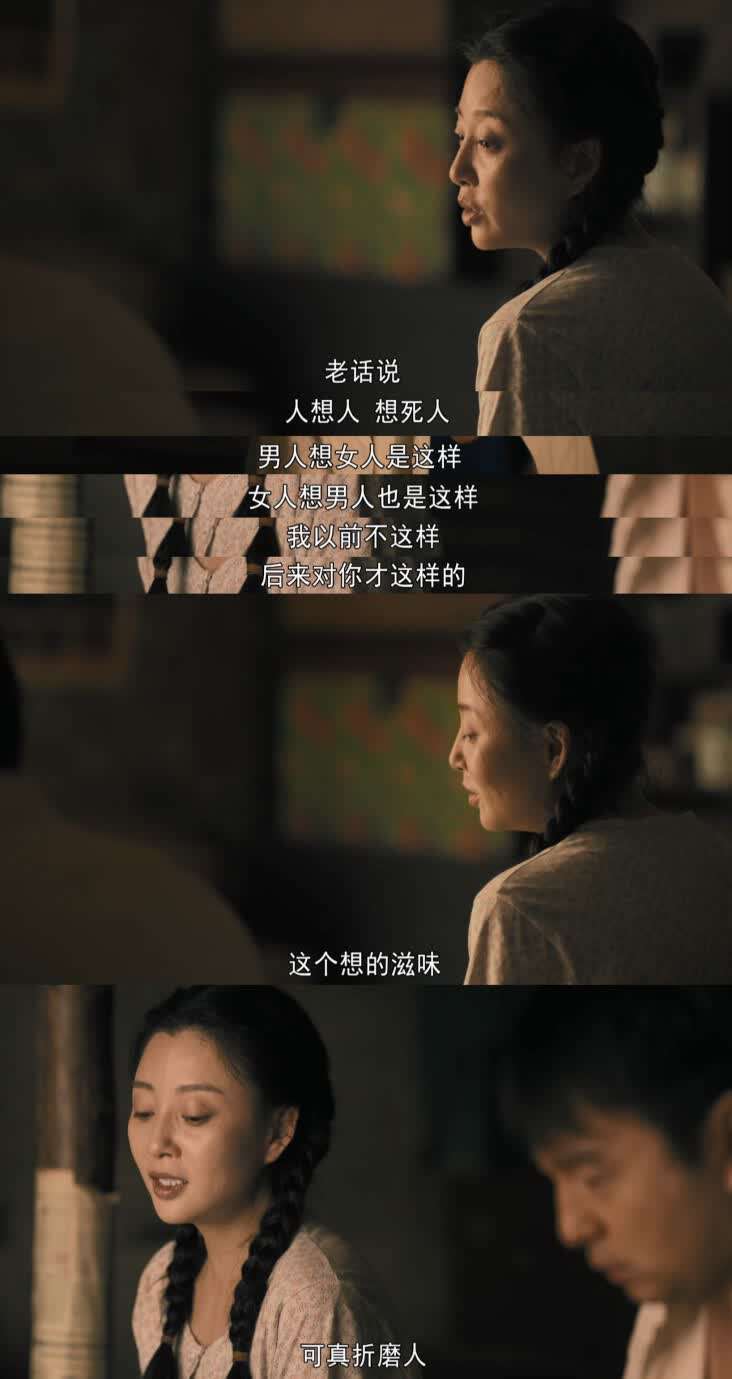 这是近年来荧屏上最接近爱情的时刻之一。我们太少在荧屏上见到这么大胆直接表示爱意的女主角——不要说那个特殊年代了,就21世纪的今天,都少有人像郑娟这么勇敢。殷桃的台词功底太好了,这段话说得那么坦率,又那么柔情似水,魅惑人心。是告白,也是引导。