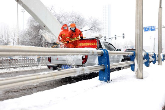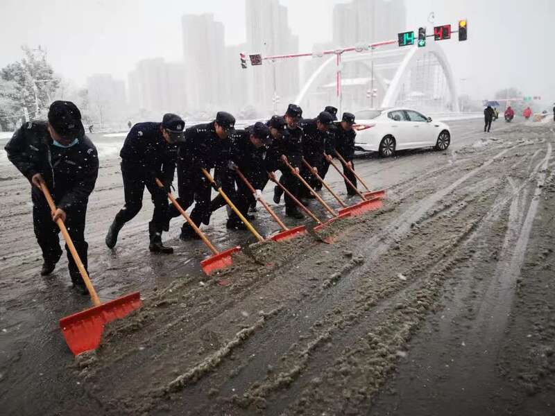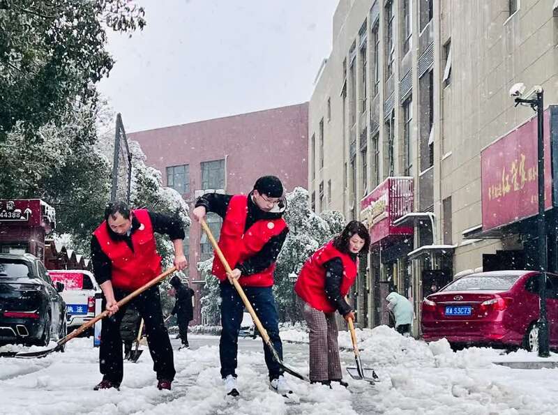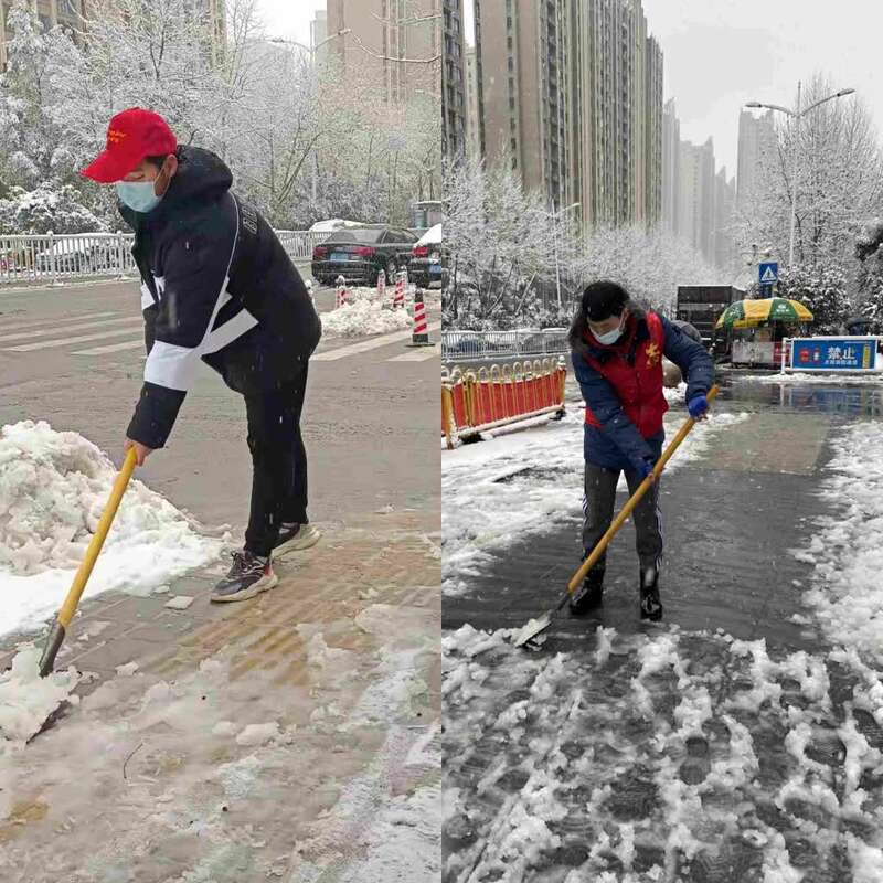 当天,数百名团员青年和志愿者响应该社区号召,拿起工具扫雪除冰。