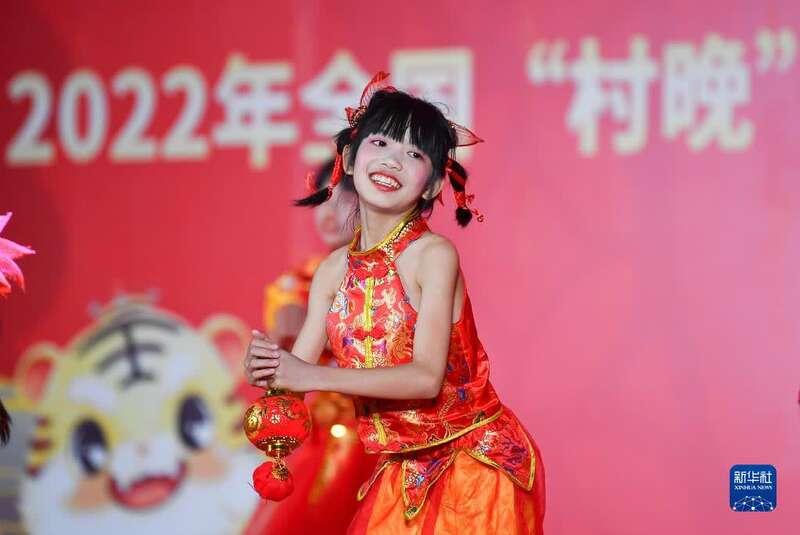 村民在海南省儋州市和庆镇六罗村第37届“乡村春晚”上表演舞蹈(1月22日摄)。新华社记者 蒲晓旭 摄